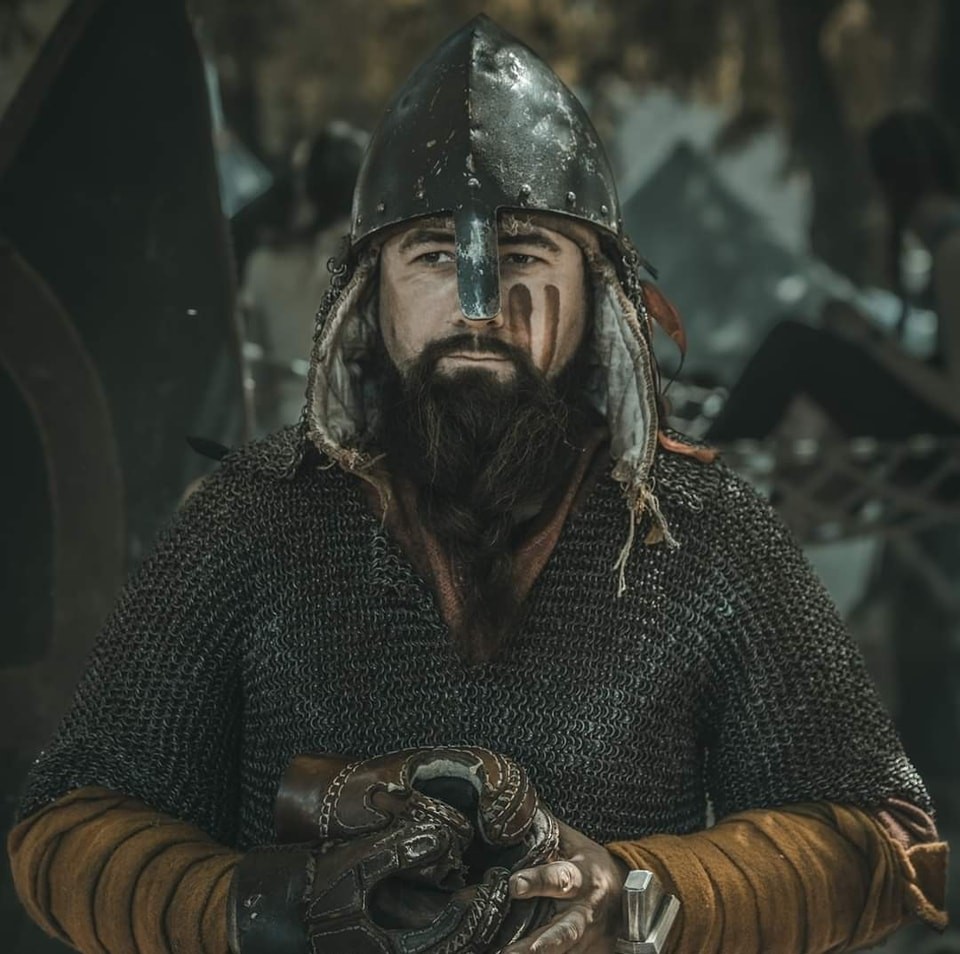 Seine Kampffähigkeiten sind Codex Belli, Huscarl und HEMA.